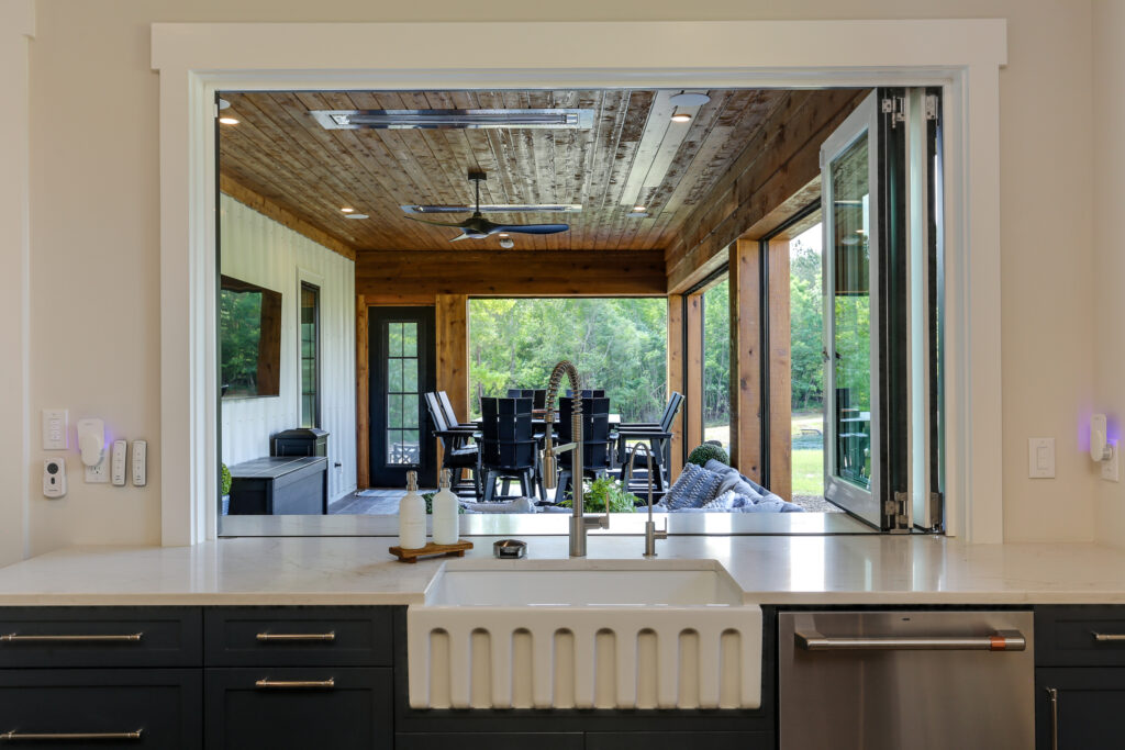 “Our outdoor space is huge for us,” Kevin explained. “We love how the living room, kitchen, and dining area open straight into the screened-in porch and outdoor kitchen. That’s where we spend our time every day.”